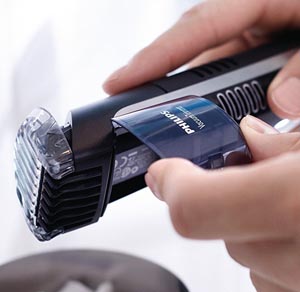 Tenendo presente quanto detto poc’anzi relativamente al pettine ad ascensore, sottolineiamo che la presenza di un sistema aspirante può aiutare la regolazione della barba, poiché i residui vengono aspirati direttamente nel serbatoio. Tale funzione evita che i peli si accumulino tra lame e il pettine regolatore, e non ci sarà dunque bisogno di spegnere il regolabarba e pulire pettine e lame (bisogna comunque svuotare il serbatoio quando è pieno). Naturalmente, però, l’aspetto primario del regolabarba “vacuum” rimane sempre quello di evitare che i peli tagliati si spargano in tutte le direzioni, sporcando indumenti e superfici del bagno.